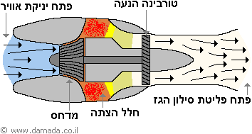 מנוע הסילון, הנקרא גם טורבינת גז, שואב לתוכו אוויר בעזרת מדחף הנמצא בחלקו הקדמי. האוויר נדחס פנימה בעזרת מערכת מדחפים נוספת אל תוך תא בעירה. בתא הבעירה מרססים אדי דלק אל תוך האוויר הדחוס. התערובת הדחוסה והדליקה מוצתת בקלות בעזרת ניצוץ חשמלי. בעירת התערובת הדליקה משחררת גזים הנפלטים החוצה מחלקו האחורי של המנוע בסילון גז אלים. כתוצאה מפליטת הסילון המהירה והחזקה נוצר כוח דחף הדוחף את המנוע ואיתו את כל המטוס קדימה.