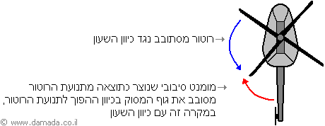 בעיה ראשונה שצצה הייתה בעיית המומנט הסיבובי. כאשר הרוטור ומערכת הלהבים מסתובבים במהירות גבוהה נוצר מומנט סיבובי המניע בתנועה בלתי-רצויה את גוף המסוק בכיוון ההפוך. כוח דחף סיבובי חזק זה, הנובע מהמומנט הסיבובי, גורם למסוק לנוע באי-יציבות באוויר, להסתחרר סביב עצמו ואף להביא עד לכדי התפרקותו לחלקים.